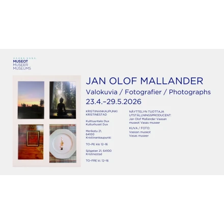 03.04.2026Keväällä 2026 kaupunginmuseo Carlsron näyttely Kristiinankaupungin valokuvaajista on esillä Kulttuuritalo Duxissa.
