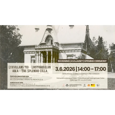 03.06.2026Lämpimästi tervetuloa kesän suuren juhlanäyttelyn avajaisiin 3.6.2026 klo 14–17 Carlsron kaupunginmuseoon.